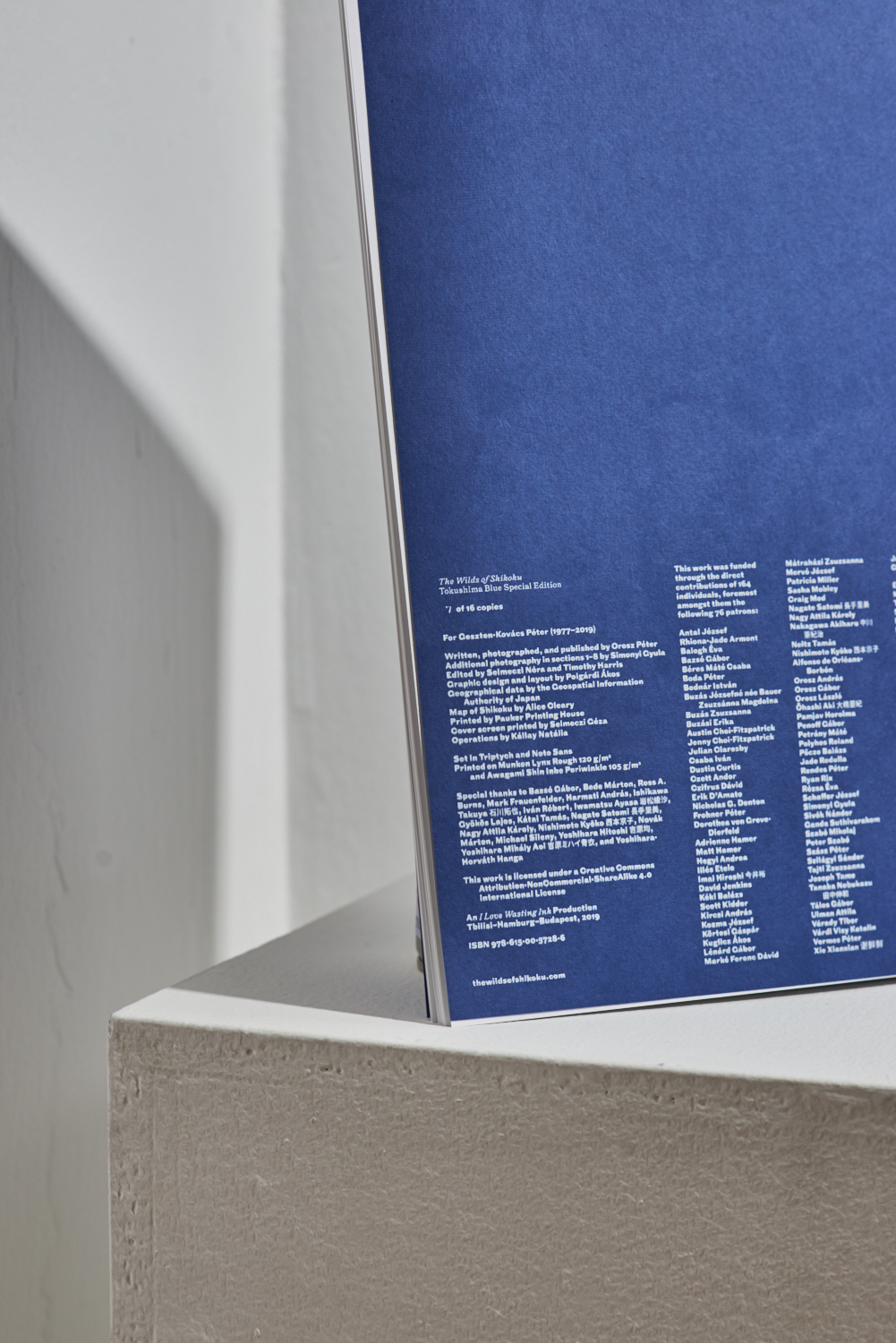 Learn more about this projectThe indigo-colored cover is printed on paper from Awagami Factory, a seventh generation papermaker. They are based in Tokushima, which has been the home of Japanese indigo dyeing for centuries and where the walk described in the book begins. There are 16, hand-numbered copies, one for each day of the walk.